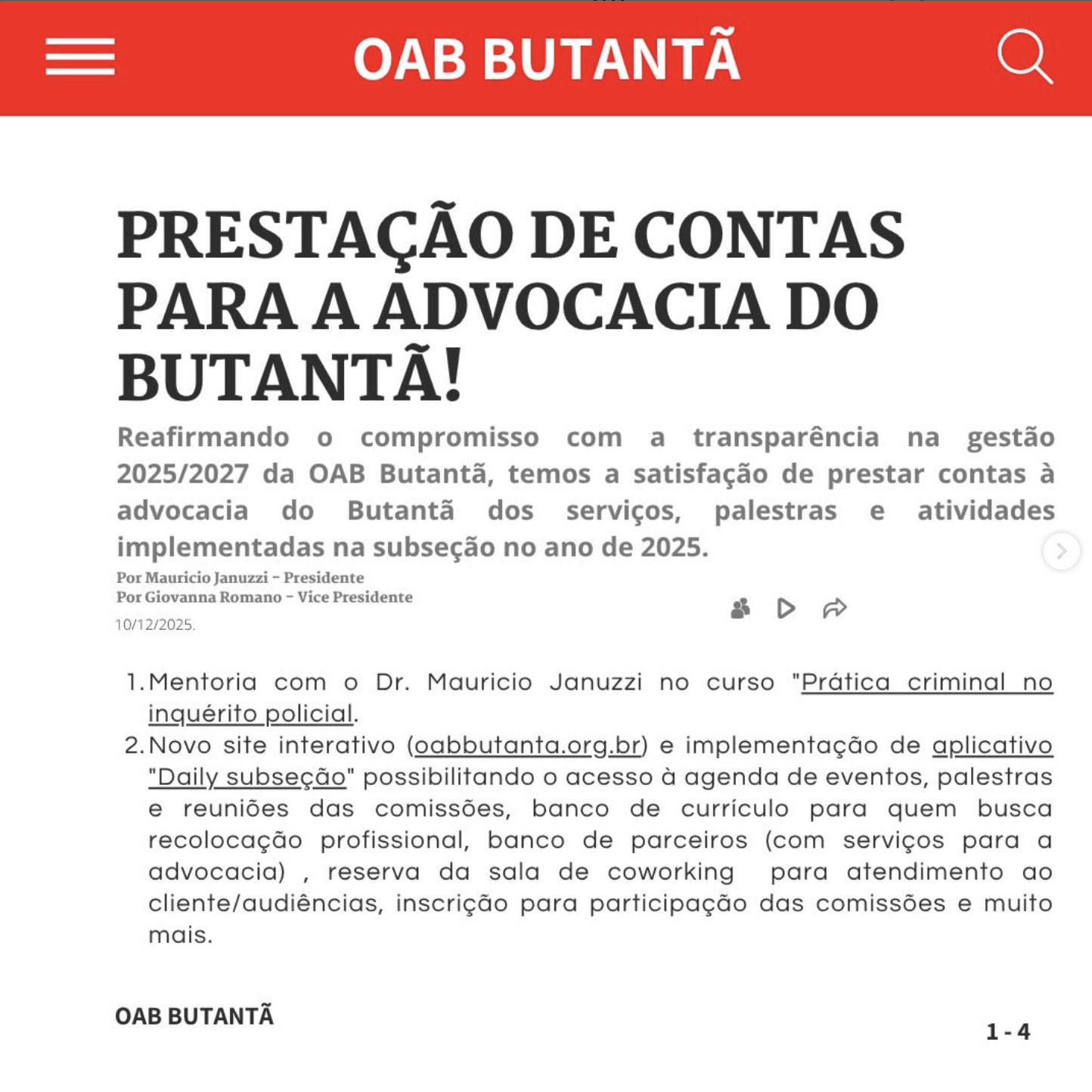 PRESTAÇÃO DE CONTAS PARA A ADVOCACIA DO BUTANTÃ!